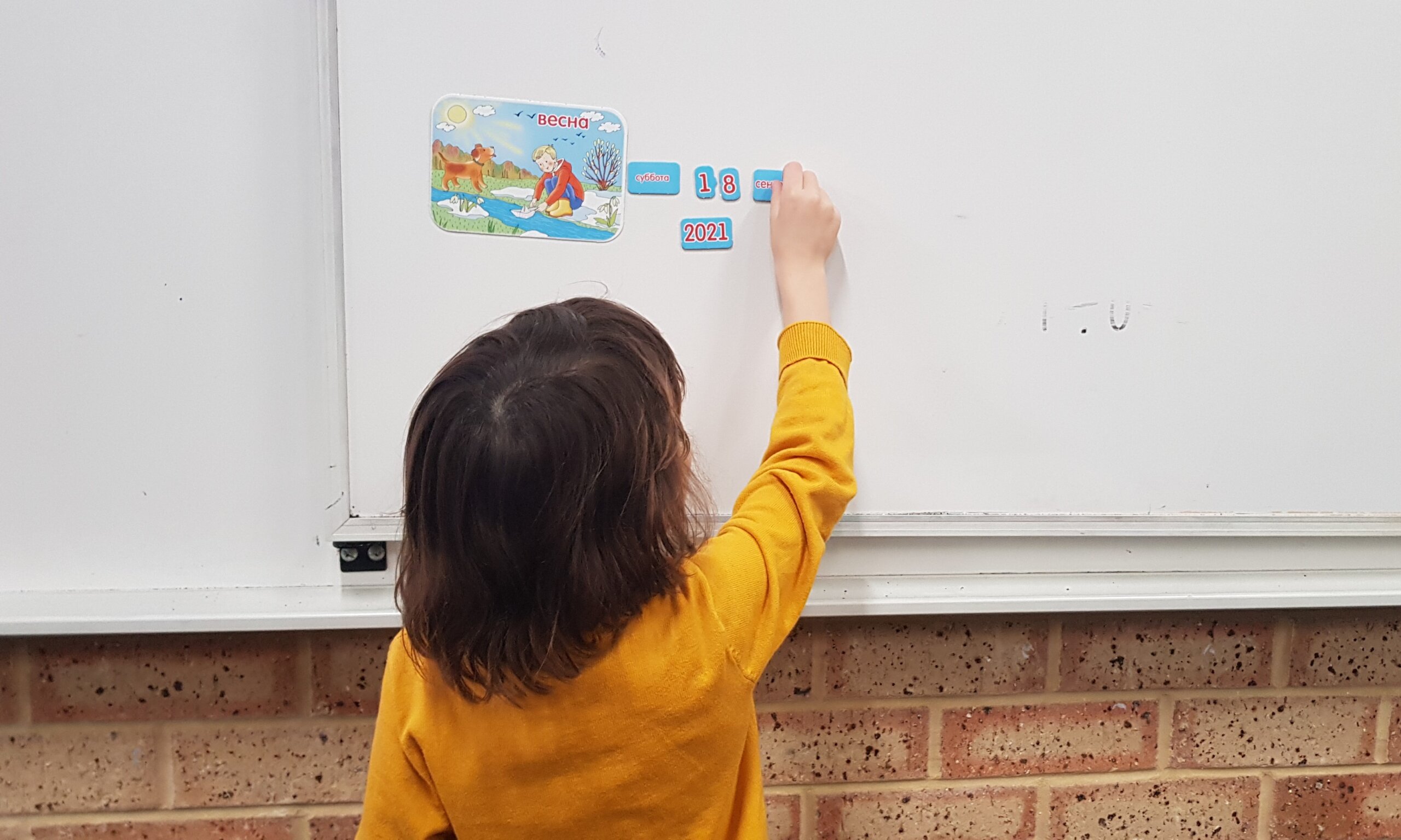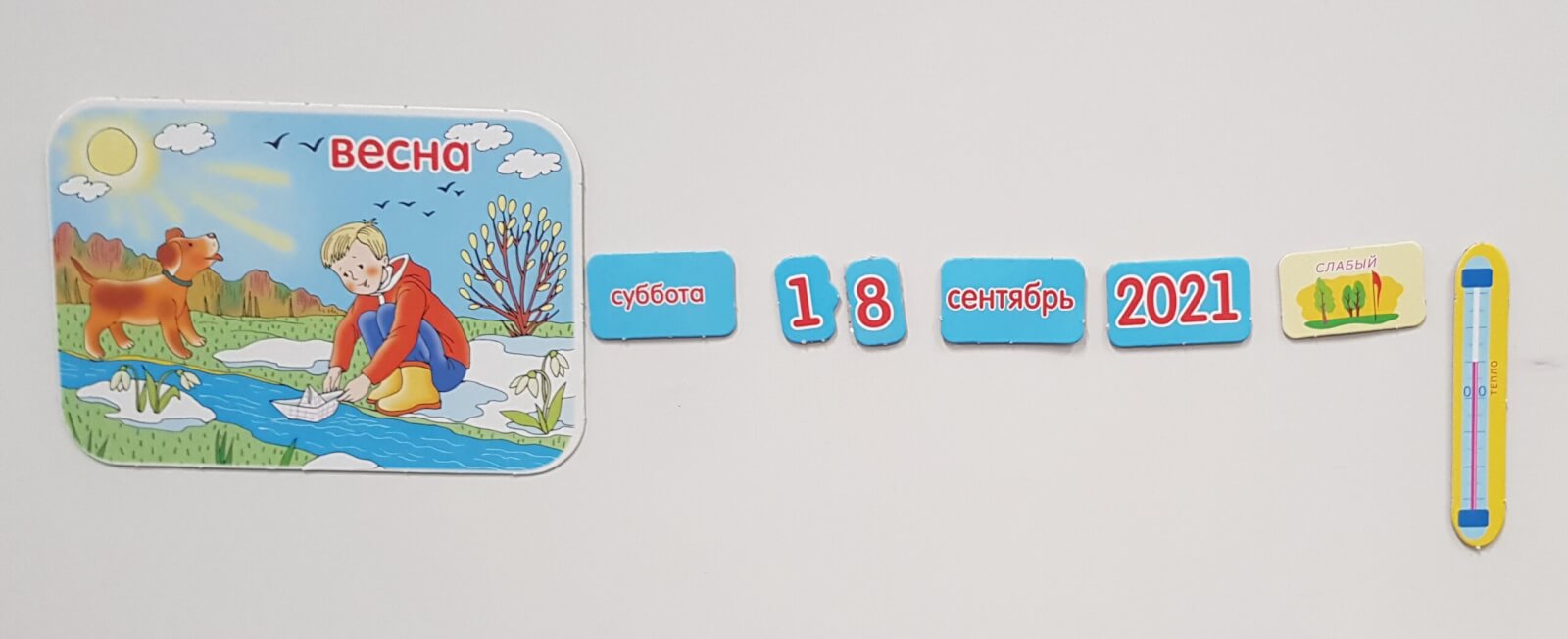На одном из занятий в прошлой четверти ребята составляли свой календарь погоды, выбирая правильные карточки и называя время года, месяц и день, а также описывали погоду того дня.