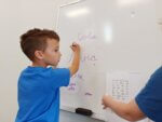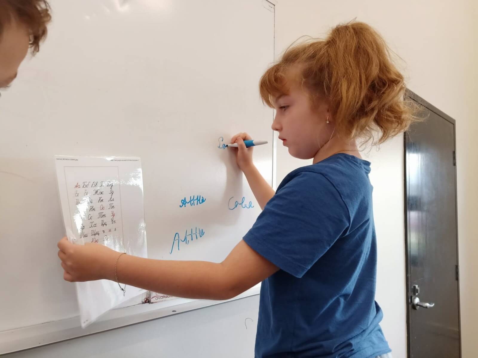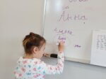 Children from the Orange group learn to join cursive letters in handwriting.