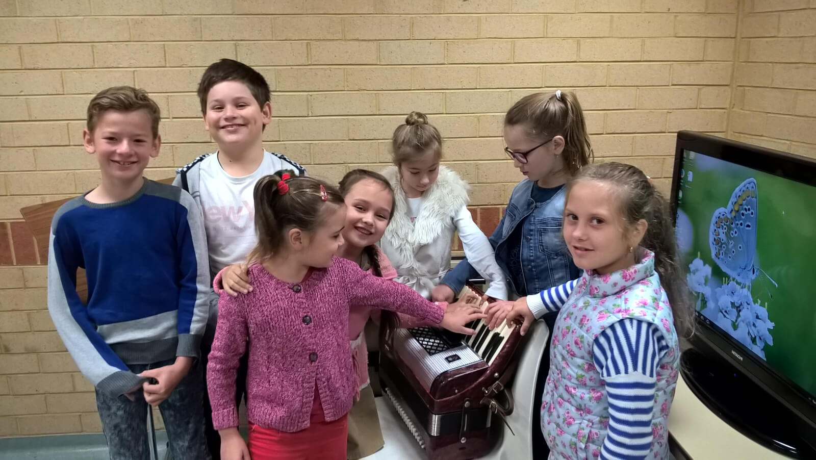 На уроках музыкального развития мы знакомимся с различными музыкальными инструментами. Вот и состоялась у нас беседа с Аккордеоном. На уроке дети узнали историю возникновения этого роскошного инструмента, послушали несколько пьес в исполнении учителя математики нашей школы Ольгой Хедж. А так же громко распевали знакомые песенки. Было очень весело и интересно!