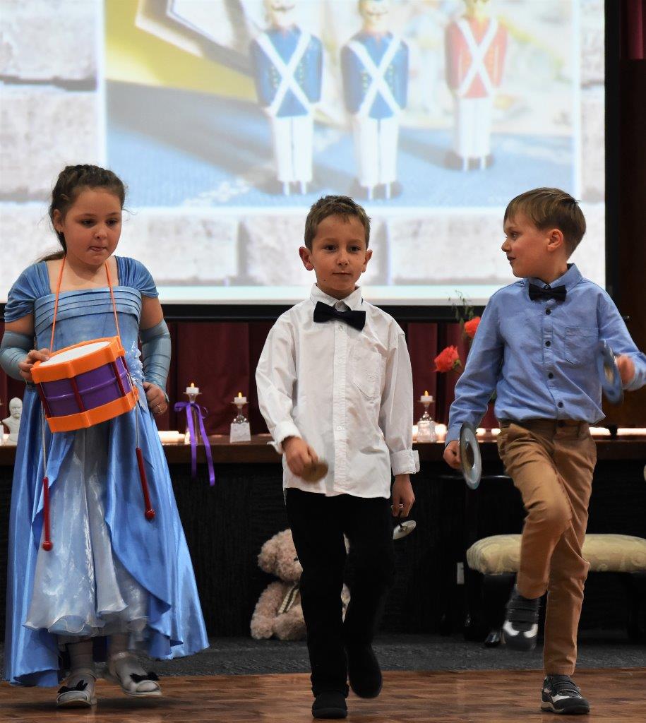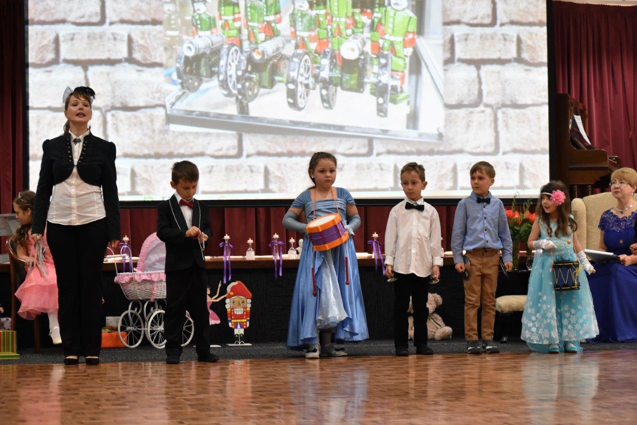 Подготовка к балу выявила очень прочные межпредметные связи, потому что готовили этот бал всей школой. На уроках русского языка обсуждали стихи, которые описывали настроение той или иной пьесы из «Детского альбома». Затем дети прочитали их на балу. И замечательно прочитали! В «Детском альбоме» есть три пьесы – «Вальс», «Мазурка» и «Полька». На уроках дети старательно изучали движения этих старинных танцев и чудно их исполнили на празднике. Так же на балу присутствовал элемент театрализации. Под «Марш деревянных солдатиков» наши дети очень забавно изображали игрушечное войско, которое вышло на парад. По сценарию бал состоялся в честь дня рождения маленькой девочки Сони, роль которой очень здорово сыграла ученица нашей школы София Жученко. В конце мероприятия был проведен мастер-класс по бальным танцам и для родителей. Очень трогательно было наблюдать, как папы танцуют с дочками, а мамы вальсируют с сыновьями. А еще были вручены призы самым элегантным семьям и детям за красивые бальные наряды! И, конечно, «сладкий стол»!