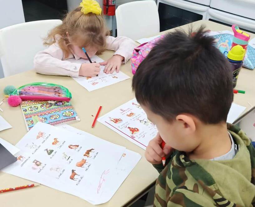 В этой четверти в подготовительных (оранжевых) группах тема наших заданий – животные. Мы начали с изучения домашних животных. Мы говорили о том, каких животных называют домашними, чем и как они помогают человеку, а также изучали, как называются детёныши домашних животных. В рамках этой темы, мы делаем новую пальчиковую гимнастику про (непослушных) котят и учим стихи про кошку, козлёнка, телёнка и жеребёнка. Старшие ребята с удовольствием пишут названия животных на доске, а младшие выкладывают слова из букв. У нас на уроках много дидактических игр. Ребятам было интересно описывать и угадывать животных, а также искать и называть пару (животное и его ребёнок).
