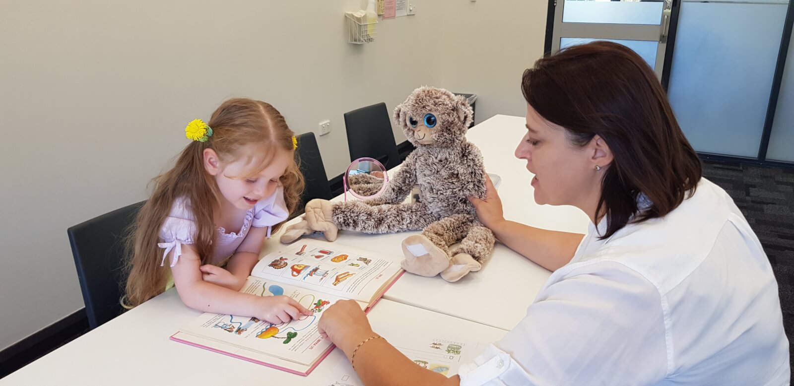 На уроках уделяем внимание речевому дыханию, aртикуляционным упражнениям и, конечно, учимся читать и писать.