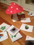 На полянке рос грибок, Дождик начинался, И какой-то червячок Под грибок забрался. Он один (1), к нему ползет Муравей с листочком, Встал он рядышком - и вот Двое (2) под грибочком. Рядом кто-то зашуршал - Это жук рогатый. Под грибок скорее встал: - Можно к вам, ребята? Стало трое (3) под грибком. Пчелка подлетела. - Вместе дождик переждем, Забирайся смело! Было три да плюс один - Их теперь четыре (4). Светлячок влетает к ним, Крылья растопырив. Под грибочком стало пять (5). К ним улитка хочет: - Начал домик протекать, Дождь мне спинку мочит! Получилось ровно шесть (6). Прилетела муха: - Можно рядышком присесть? Здесь тепло и сухо! Под грибочком стало семь (7). Вдруг кузнечик скачет: - Я промок, замерз совсем! Стало восемь (8), значит. Тут комарик озорной Стал звенеть и реять: - Было восемь, а со мной Получилось девять (9)! Вдруг откуда ни возьмись Жаба появилась. Посмотрела сверху вниз - Мошки притаились. - Я замерзла под дождем, Здравствуйте, ребята! Вас тут девять под грибком - Буду я десятой (10)! Все пустились кто куда, Кончился и дождик. Жаба прыг туда-сюда - Их поймать не может.
