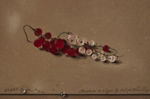 я альбомы цветов и популярные еще в XVIII веке натюрморты-обманки. Художник будто кладет веточку смородины на плоскую поверхность так, что она отбрасывает тень, рисуя рядом каплю росы с предельным натурализмом.
