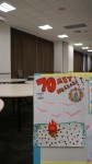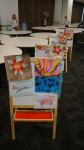 В зале была устроена выставка детских рисунков и поделок на военную тему. Были оформлены две композиции с книгами, журналами о войне на русском и английском языках, с фотографиями военных лет, со статуэтками памятников Русским солдатам из разных стран.