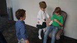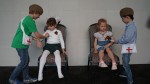 Перед концертом для ребят провели тематические игры – эстафета «Полевая почта или доставь письмо», а также небольшой мастер-класс и конкурс «Перевяжи раненого», где дети, как настоящие медицинские сестры и братья, ставили градусники и бинтовали раненых.